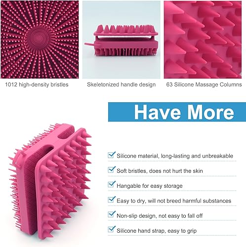 Dual Sided Body Scrubber: One side is a soft and thick silicone shower scrubber and the other side is a scalp brush, making it very convenient to use two brushes in one.