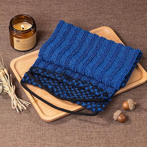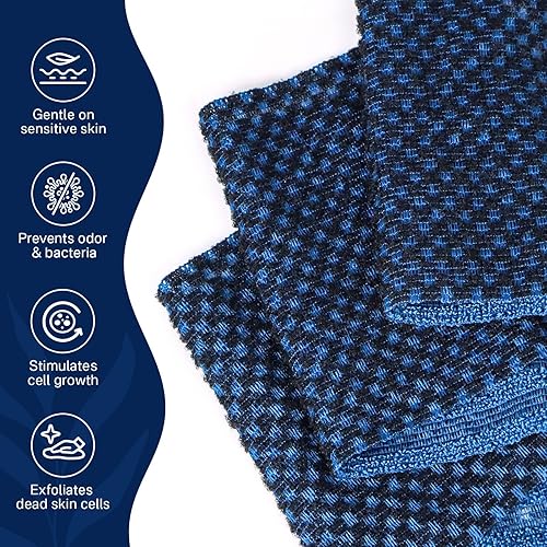 Dual-Textured Exfoliating Washcloth & Back Scrubber Towel(Blue)