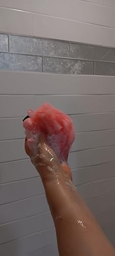 PREMIUM MATERIAL: Soft and luxurious mesh bath pouf made from high-quality nylon netting that creates rich lather while cleansing and exfoliating skin