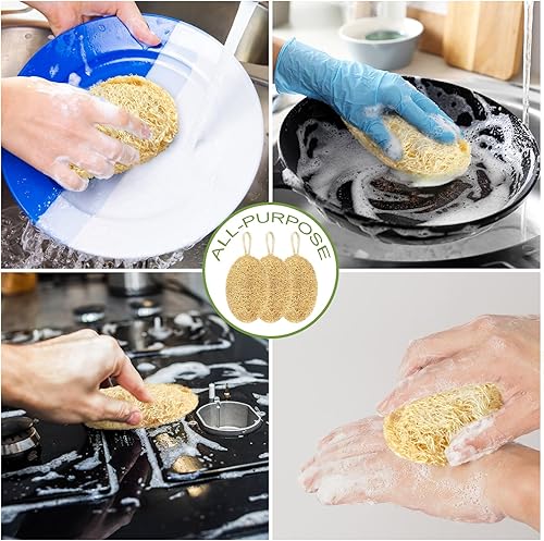 ALL-PURPOSE--The loofah kitchen sponge can be used for a variety of cleaning tasks, including cleaning dishes, kitchen utensils, sinks, stoves, bathrooms or in the bathroom as an exfoliating body scrubber, remove dead and dry skin cells. It is a sustainable, non scratch and reusable cleaning tool, providing an efficient, safe, and environmentally friendly choice for kitchen, home cleaning and bathroom. Great idea ecotools kitchen for Zero Waster or someone who is looking to go a little Green-er.