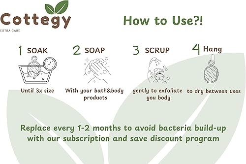 Responsibly Gift-Packaged: Presented in a beautiful, gift-ready bag, the Cottegy 3-Pack Shower Loofah Sponges make a thoughtful gift, offering loved ones relaxing and invigorating spa experiences at home.