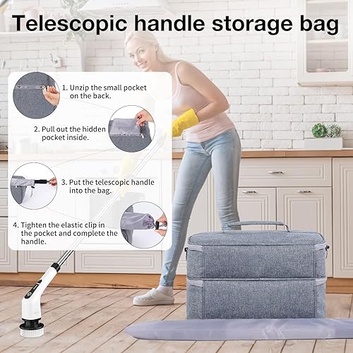 Heavy-Duty & Premium Material: The electric spin scrubber storage bag features the premium waterproof nylon fabric with exquisite reinforced stitching and smooth zipper, excellent wear-resistant performance to offer superior quality, durable and long lasting.