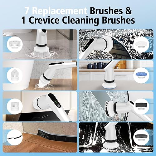 Multi-Surface Brush Set. This complete kit comes with 7 interchangeable heads for effective cleaning on bathtubs, tiles, glass, car interiors, kitchen stovetops, and hard-to-reach corners. Features convenient Type-C charging (compatible with most phone/tablet adapters). Power adapter sold separately.