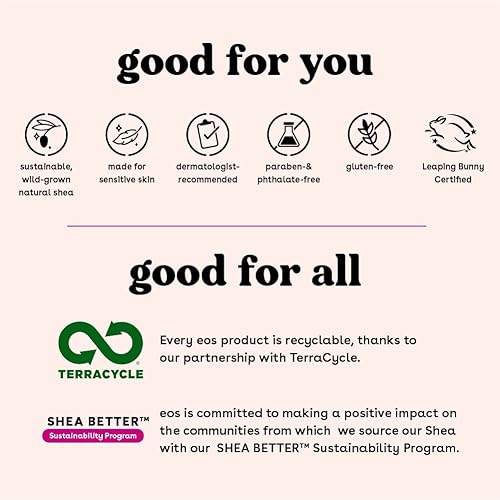 SUSTAINABLY-SOURCED INGREDIENTS: eos lip balms have wild grown, sustainably sourced, 100% natural shea butter and oil to leave your lips smooth and nourished