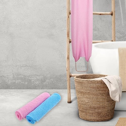【Package Included】You will receive a set of 2 exfoliating washcloths in pink and blue. The body scrubber measures approximately 17.7× 7.87 × 0.08 inches/ 45× 20 × 0.2 cm. The back scrubber for a shower is convenient for cleaning the back. You can choose your favorite color or share it with your family.