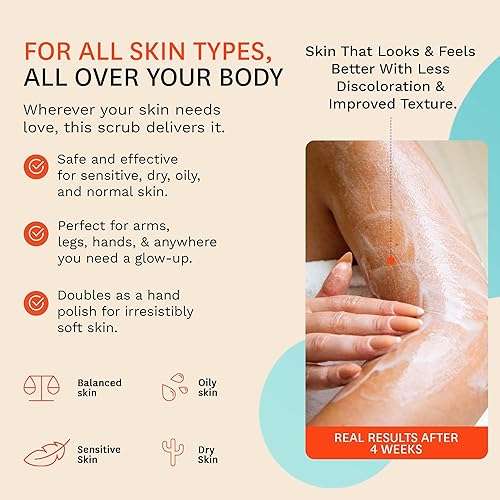 Versatile for All Skin Types: Ideal for dry, oily, sensitive, or normal skin, this exfoliating body scrub targets rough skin, keratosis pilaris, and uneven texture. It’s a gentle yet effective solution for those seeking smoother skin. Use daily or weekly for best results.