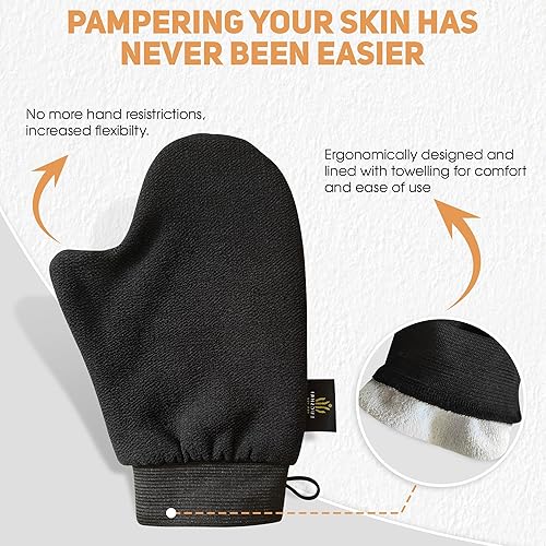 Experience the feelgood factor when you use the designer Lucshri deep exfoliating mitt. Ergonomically designed and lined with towelling for comfort and ease of use. Moisturize after for best results. Exfoliating and moisturizing regularly is a must for ingrown hair treatment & dry skin.