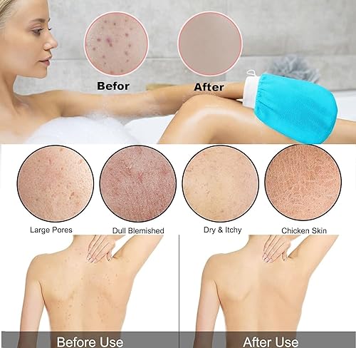 Deep Improves Skin:Exfoliating gloves help with deep cleansing.It can soften rough and dry skin,promote skin metabolism and blood circulation.highly effective in removing dull and dry skin,suitable for all skin types.