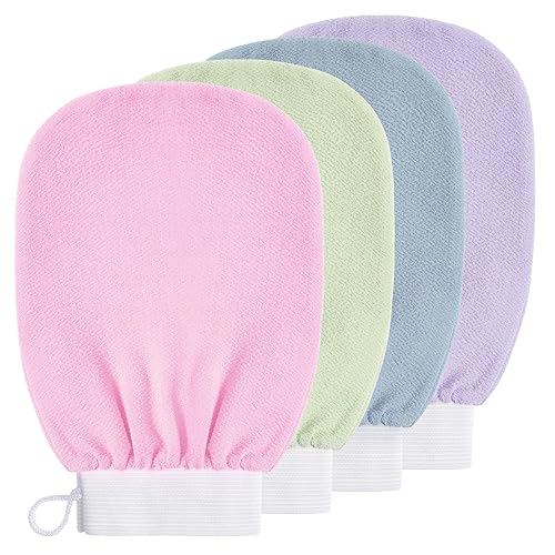 Exfoliating Gloves 4-Pack - Deep Body Scrub & Dead Skin Remover(Black-White- Blue-Rose Red)