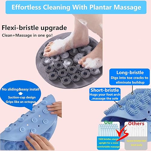 【Clean Your Back&Feet Deeply】:Your feet will get fully clean with Thousand of scrubbing bristles, exactly reach the hard-to-get-into areas between toes. Besides, it can remove calluses, dead skin, or other annoying foot skin problems.The shower foot scrubber will be literally the best part of your shower.