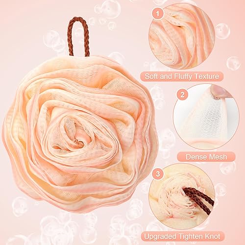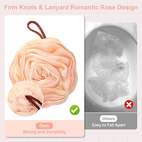 Reliable and Long-lasting: Crafted from 66g high-quality PE materials, the rose-shaped loofah sponge is soft, resilient, firm and not easy disperse, ensuring long-term use without deform.