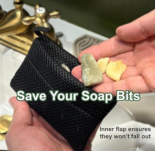 FITS ALL SIZES OF BAR SOAP - our soap saver bags are super stretchy - the 3D mesh design allows it to stretch around any shape and size of bar soap, without the extra material for a nice, tight fit. Perfect for standard soap bars, extra-large square bars, and artisan handcrafted soap, Soap Envelope bar soap pouches are tested and fit nearly all types of soap. Our fabric is a proprietary Cycle Air stretch material that conforms to the soap bar without loose, extra bagge. Extra-large artisan soaps. Tested with over 200 varieties of soap to verify maximum fit and compatibility. It's meant to stretch and hold tight to get a good grip on your bar soaps instead of having a loosely fit bag.