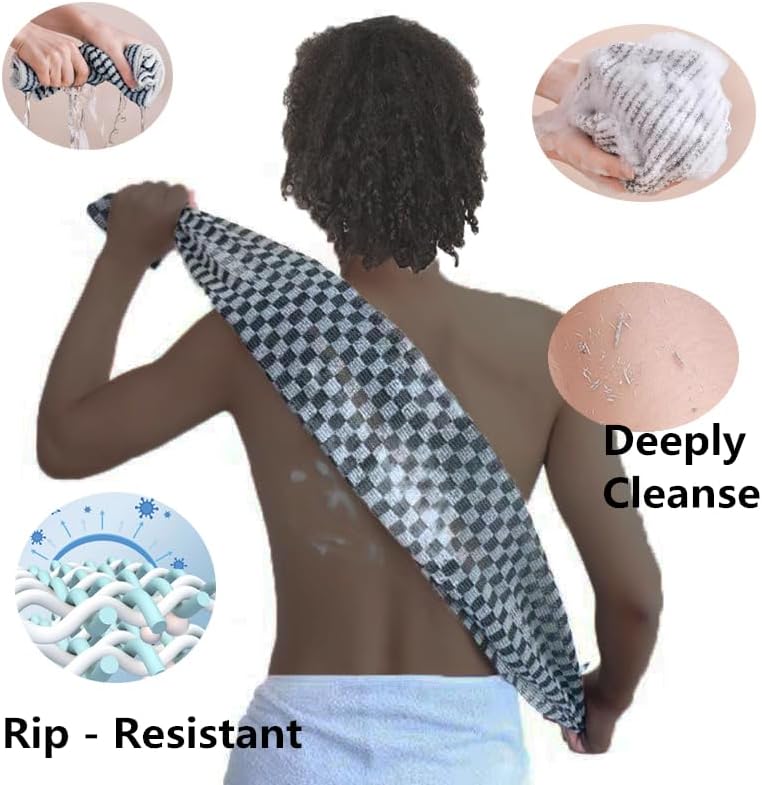 Bigger exfoliating cloth Size: 40 x 11 Inch, the size helps you reach everywhere, making your skin feel nice and refreshed for provide you with a more convenient shopping experience.After shower, just hang them anywhere and the wash cloth towel will dry quickly.