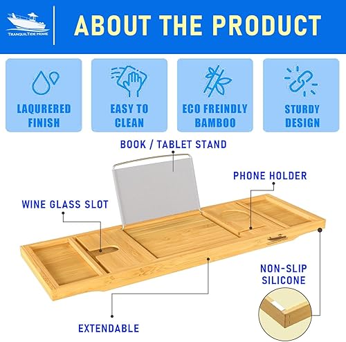 Expandable Design: This bath tray for tub extends from 30 to 43 inches, accommodating a variety of tub sizes, ensuring a perfect fit for your relaxing bath time experience.