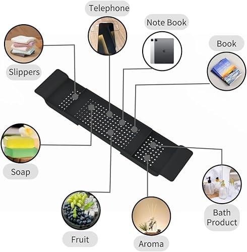 Customizable Fit for Any Tub – This bathtub tray is designed to expand, ensuring a perfect fit for various bathtub sizes. Whether you have a clawfoot, freestanding, or alcove tub, it easily adjusts to provide a stable and secure surface.