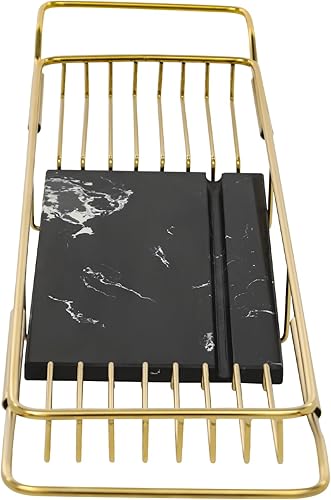 【Rustproof & Easy to Clean】Made of durable 201 stainless steel and marble, the metal wire bath tub caddy will not retain or absorb water, making it easy to clean and maintain a good condition every time you take a bath