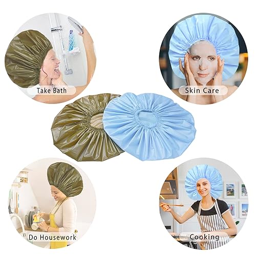 WATERPROOF JUMBO SHOWER CAPS - Made from premium water-resistant and skin-friendly PEVA materials, our reusable waterproof shower cap can effectively keep your hair from getting wet during showers or baths. Upgrade your shower experience.