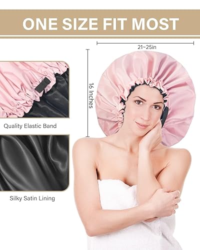 Extra Large Shower Cap for Women - Double Layer Waterproof(pink)