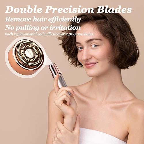 DOUBLE PRECISION BLADES - Features twin micro-surgical-grade blades for 2x hair removal efficiency, effortlessly removing even peach fuzz and fine hairs without pulling or irritation for silky-smooth skin.