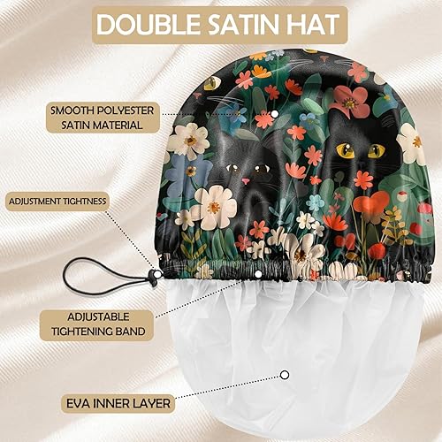 Floral Shower Cap for Women - Reusable Waterproof Hair Bath Cap(I23-Mushroom Cat)