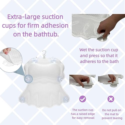 【Advanced Suction Cup Stability System】 6 reinforced suction bases securely attach to bathtub surfaces. Raised-edge technology allows easy repositioning while maintaining anti-slip performance during vigorous movements. Premium Breathable Mesh Technology