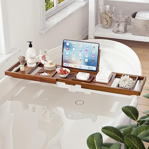 [Ultimate Convenience] Enjoy the ultimate relaxation experience with our spacious bath tray, providing ample room to hold all your bath essentials such as towels, wine glasses, candles, iPads, books, and more. Everything you need within reach while soaking in the tub