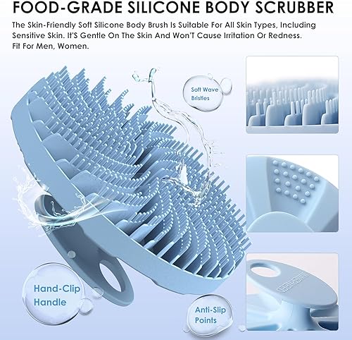Food-Grade Silicone Body Scrubber - Exfoliating Shower Brush(Light Blue)