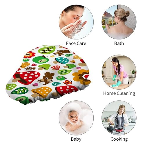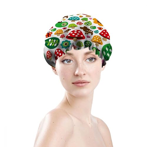 Funky Skull Shower Cap - Double Waterproof Bathing Hat(Colorful Mushroom)