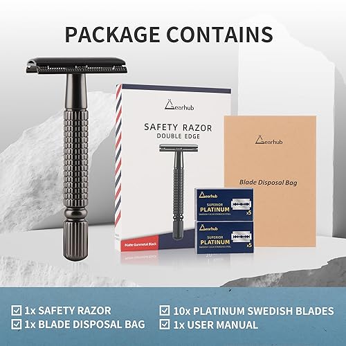 Gearhub Safety Razor with 10 Swedish Blades - Men & Women(Matte Gunmetal Black)
