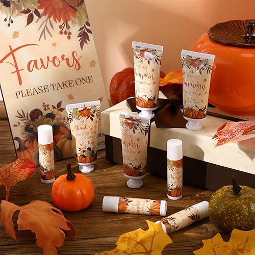 Baby Shower Favors & Thank You Gifts: Express gratitude with our exquisite "Thank You for Showering Us with Love" gift set! Perfect as baby shower games prizes or guest favors, this curated collection includes rose-scented 30 hand creams& 30 lip balms in custom-designed packaging. The soothing pumpkin fragrance creates calming tranquility, making it a cherished baby shower souvenir for your party. Elevate gift tables and delight guests with this thoughtful, presentation-ready favor