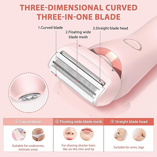 【Multi-function Electric Shaver】Three-blade design can effectively remove hair from various parts of the body. The straight blade is perfect for arms and legs, the curved blade expertly handles underarms and the bikini area, while the 3D floating foil targets shorter hairs
