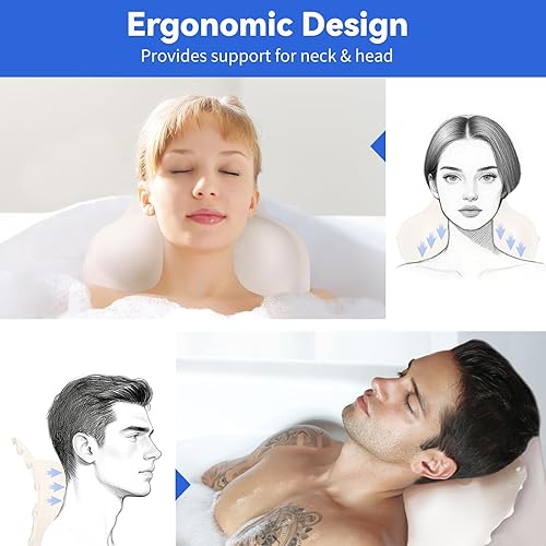 [SKIN-FRIENDLY SILICONE BATH PILLOW]: The bath pillows for tub is made of upgraded soft skin-friendly silicone material with better elasticity, as delicate as baby's skin, the bathroom pillow better support the head, neck and back, making the bathing experience more comfortable and relaxing.