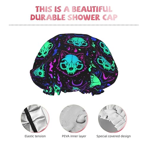 Goth Black Cat Skull Shower Cap - Waterproof Bath Cap