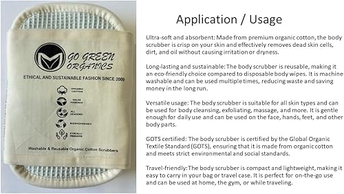 • Ultra-soft and absorbent: Made from premium organic cotton, the body scrubber is crisp on your skin and effectively removes dead skin cells, dirt, and oil without causing irritation or dryness.