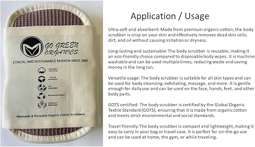 Ultra-soft and absorbent: Made from premium organic cotton, the body scrubber is crisp on your skin and effectively removes dead skin cells, dirt, and oil without causing irritation or dryness.