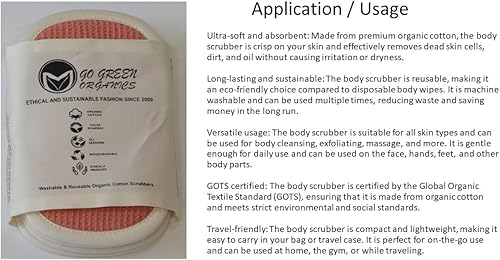 Ultra-soft and absorbent: Made from premium organic cotton, the body scrubber is crisp on your skin and effectively removes dead skin cells, dirt, and oil without causing irritation or dryness.