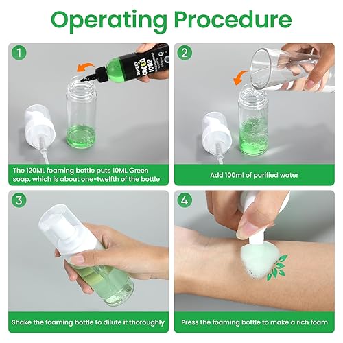 ISEHERI Green Soap Kit : You will receive a 10 oz bottle of Ultra Concentrated Green Tattoo Soap, along with a 120ml foaming bottle and an 8 oz squeeze bottle. Safely prep your skin for tattoos and piercings with our gentle and hypoallergenic formula.