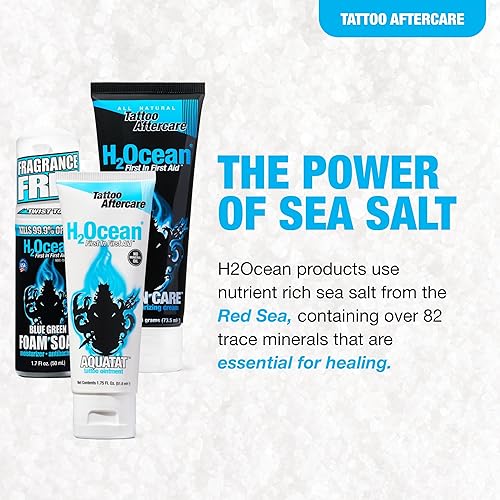 3 STEP HEALING PROCESS - Start with a cleansing skin wash with Blue Green Foam Soap. Then seal your skin with Aquatat healing ointment. Finally moisturize your tattoo with Ocean Care Cream to prevent your skin from drying out and scabbing.