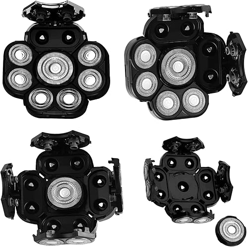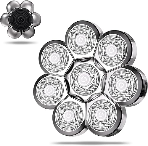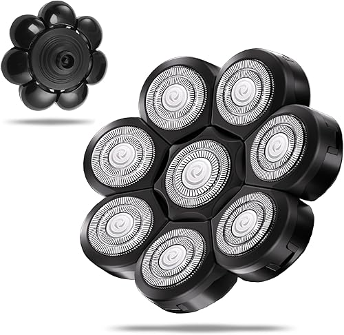☘Clean Cut ☘7D floating double ring blades with self-sharpening technology, are degined to captures the hair and cut hair close. Compare to 4, 5, 6 rotary blades of shaver heads, the 7D larger contact area of shaver replacment blades, fit contours of your face, head, neck and jaw. Save your shaving time, enjoy your freedom grooming head shaving experience.