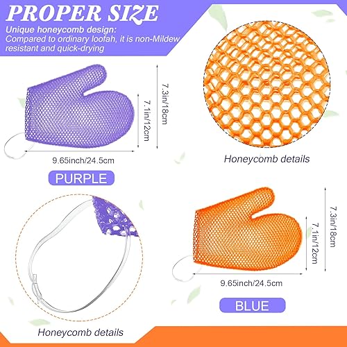 Package Contains: the package includes 2 pieces of body exfoliator gloves in 2 colors, blue and purple; The appropriate quantity and classic colors can meet your daily using needs for body scrubbing, or you can also share them with your family members