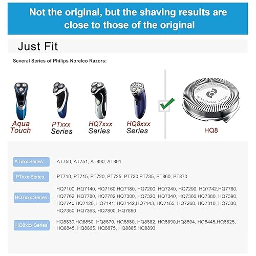 Compatible with Philips shaver various models: 7110X, 7115X, 7125X, 7140XL, 7145XL, 7150X, 7180XL, 7183XL, 7240XL, 7260XL, 7310XL, 7315XL, 7325XL, 7340XL, 7345XL, 7350XL, 7360XL, 7380XL, 7735X, 7737X, 7775X, 7800XL, 7810XL, 8831XL, 8845XL, 8846XL, 8867XL, 8881XL, 8892XL, 8894XL, AT750, AT751, AT890, AT891, PT710, PT715, PT730, PT725, PT730, PT735, PT860, PT870.