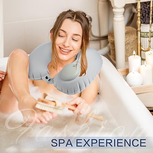 Innovative Inflatability: this inflatable bath pillow goes above and beyond traditional bath pillows; Its innovative inflatable design allows it to be inflated within 30 to 60 seconds, you can use the travel neck pillow as quickly as you want; Plus, with no suction cup design, it gives that precious freedom to float effortlessly while you bathe, transforming your ordinary bathing experience into extraordinary relaxation