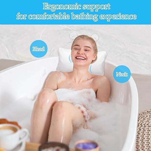 Inflatable Bathtub Pillow with Suction Cups - Anti-Slip Spa Cushion