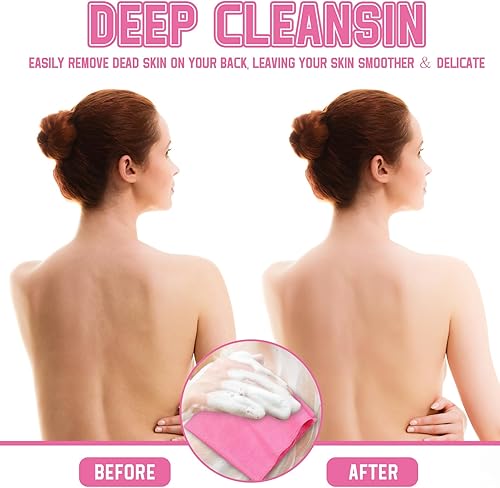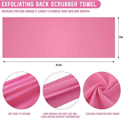 Package Information: what you get are 4 pieces of exfoliating washcloths, coming with 4 different colors, including pink, blue, yellow and green, allowing you to choose as you like, and each of them is about 35.43 x 13 inches/ 90 x 33 cm, convenient to clean your back