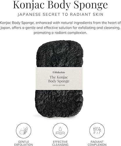 100% Natural Konjac Root Sponge: Crafted from the konjac plant native to Japan, this body sponge offers a soft, biodegradable option for daily exfoliation and skincare.