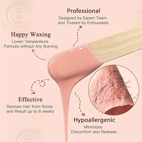 Material Feature: Durable & Long-Lasting – The wax beads are formulated to provide durable performance, effectively removing hair from the root and leaving skin smooth for an extended period without frequent reapplication., Hypoallergenic Composition – Crafted with gentle, hypoallergenic materials to reduce the risk of irritation, making it safe for all skin types, including sensitive areas., Low-Melting & Smooth Application – Melts evenly at a low temperature for a comfortable waxing experience, ensuring a smooth, easy application without stringy or clumpy residue. See more