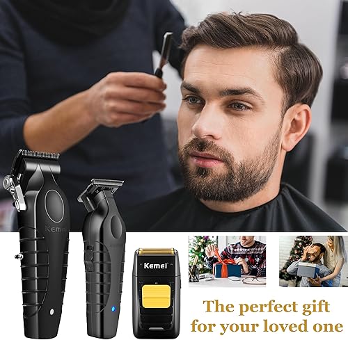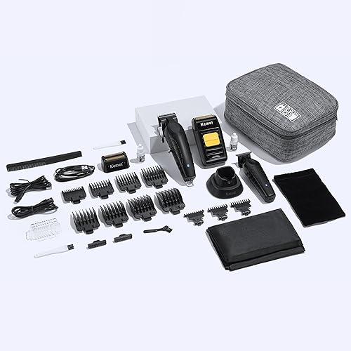 Professional Men's Grooming Set: This haircut set includes a KEMEI 2296 cordless hair clipper, a KEMEI 2299 hair/beard trimmer and a KEMEI 1102 foil shaver with replacement heads, 8 hair trimmer guide combs (3/6/10/13/16/19/22/25 mm), 3 detail trimmer guide combs (1/2/3 mm), 3 USB cables, 1 travel bag and more. Whether you are trimming your hair, styling your beard, or achieving a close shave, this set ensures professional-quality results at home or on the go