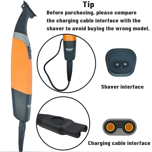 Compatible Shaver Models: This charging cable is compatible with KEMEI KM-1910 Electric Shaver. Tip:The packaging includes a power cord and does not include a shaver. Before purchase, please compare the interface of charging cable and shaver to avoid buying the wrong model.