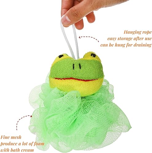 Lovely Animal Appearance: 5 styles of baby bath sponge come in various cute animal shapes, including frogs, bears, lambs, rabbits, and ducks, children will love these cute shower sponge!