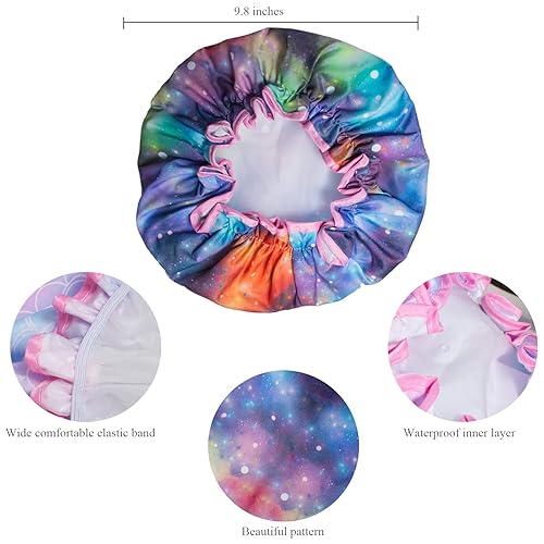 Cute Bath Cap: 2 Pieces kids shower cap for girls with galaxy and mermaid prints, the dreamlike colorful make the shower cap be lovely, in line with children's innocence